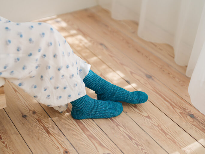 コットンを紡績するとき、糸にならなかった短繊維の落ち綿のヴァージンコットンを100%使用した糸に、シャリ感と通気性があるヘンプを合わせた、環境にやさしい靴下です。シャリシャリとした風合いが、何度でも履きたくなる心地よさです。履けば履くほど風合いが出てきて、ヴィンテージ感が生まれてきます。履くたびに足に馴染み、愛着がわいてくる靴下です。コットンに清涼感とシャリ感があるヘンプを合わせて編むことで、爽やかな履き心地が実現します。ヘンプ素材も、農薬をほとんど必要としない植物なので環境にやさしいのもポイントです。